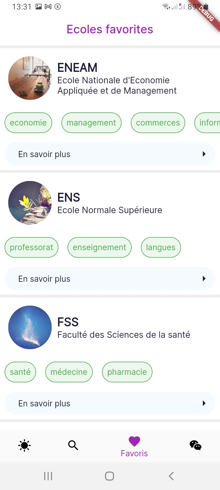 Rechercher facilement les écoles ou des formations en utilisant des mots clés ou leur nom. Trier les recherches.